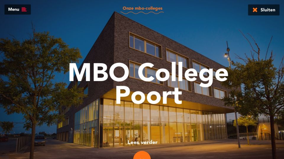 Op MBO College Poort vind je sportieve, ondernemende en creatieve studenten. In het nieuwe, inspirerende en duurzame schoolgebouw heeft iedere opleiding zijn eigen thuisbasis en kennen de docenten alle studenten bij naam. Er zijn speciale werkplekken waar studenten werken aan opdrachten voor en met echte opdrachtgevers. Ondernemen en creativiteit staan centraal.